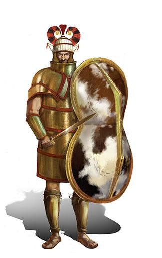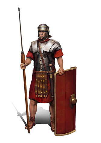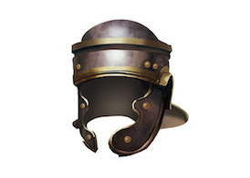 This famous legionnaire helmet consists of several different versions and designs ranging from location and time period. All which are centric to the Roman Empire. They date from 1st century BC to 4th century AD. They featured a sloped neck guard, projecting ear guards, brass trim, and even decorative bosses. The helmet would evolve to include iron bars riveted crosswise across the helmet to increase protection, especially against the falx (curved type blade).