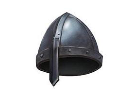 The name gives it away with the characterized use of a nose-guard down the middle of the users face. It was used throughout Europe in the 9th century AD up to the 12th century AD. They were some of the first helmets to be predominately all iron, and would eventually be made from single sheets of iron instead of segmented construction. They were used over the top of a mail coif that provided additional protection for the neck, throat and head.