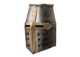 Was an evolution from the nasal helmet used from 12th century AD to around the 15th century AD. It was a barreled style and used by most knights in the armies of Europe. This enclosed helmet offered superior protection, but at the cost of visibility and comfort. By the 13th century, most great helms were worn with a mail coif in conjunction with an iron skullcap to provide 3 layers of protection.