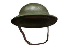 Patented by John Leopold Brodie in 1915 the Tommy helmet or doughboy helmet would be fielded by the allied armies of WWI. With more than 7.5 million being produced by the end of the war. The design was made of Hadifield steel with a slight brim. The design allowed for the thick steel to be formed in a single press while maintaining a uniform thickness.