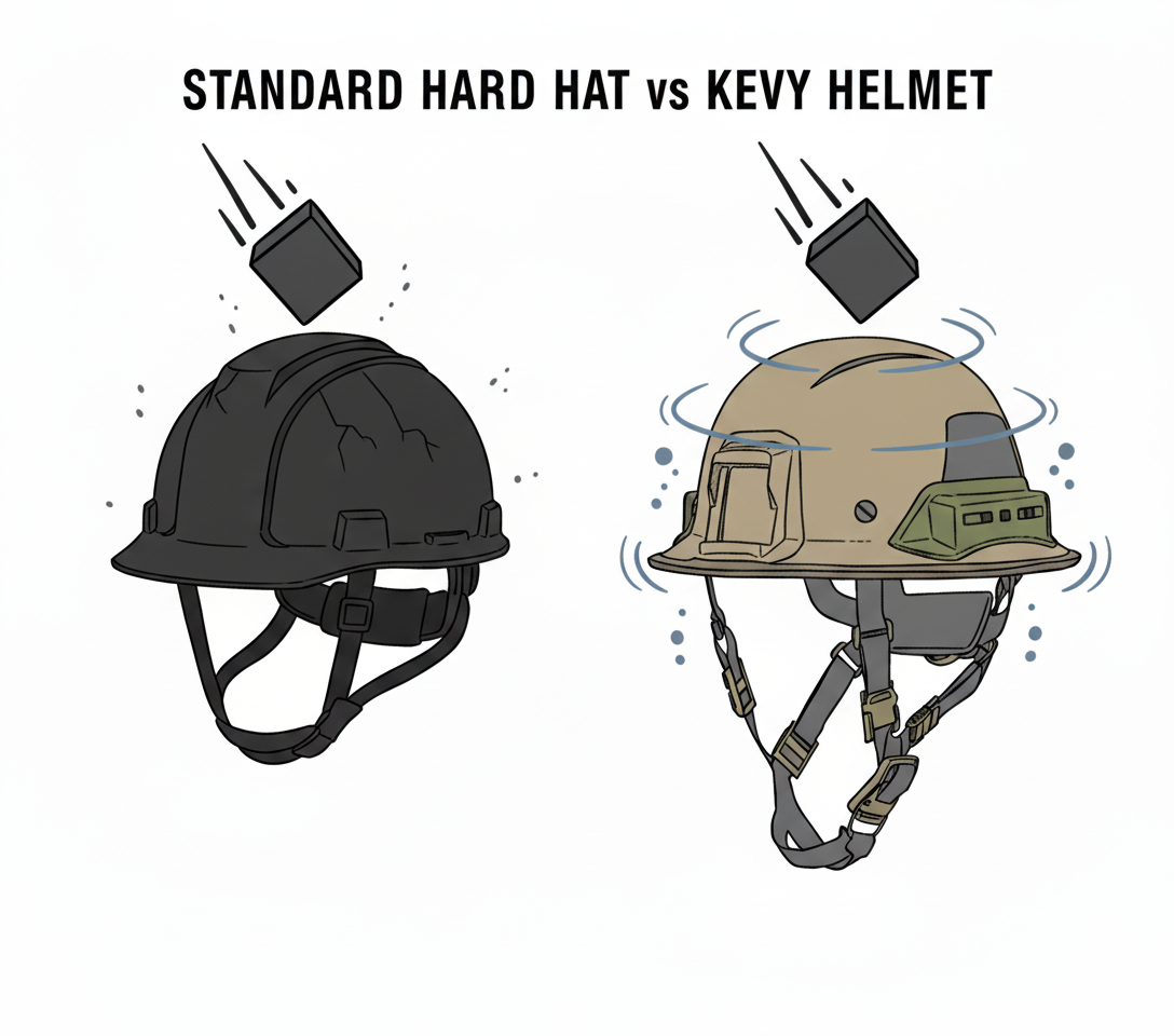 Kevy Safety helmets are validated in accredited labs against ANSI Z89.1 Type II standards and tested to reduce impact force and energy transmission far beyond the minimum requirements.