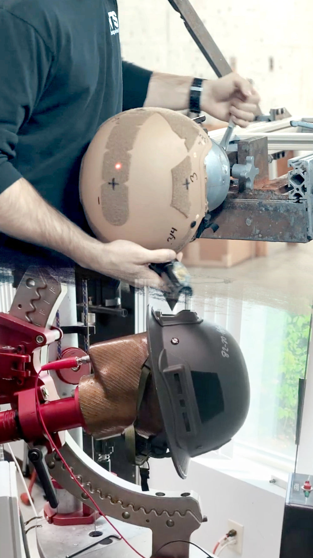 Simulates falls, strikes, and debris impacts. Exceeds ACH / AR/PD 10-02 protocols.